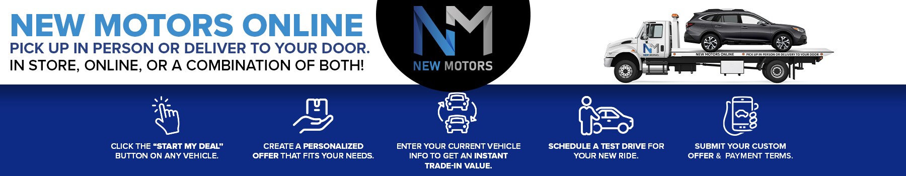 New Motors is committed to providing a simple and stress-free experience for all of our customers, which is why we've brought car-buying to the comfort of your home.