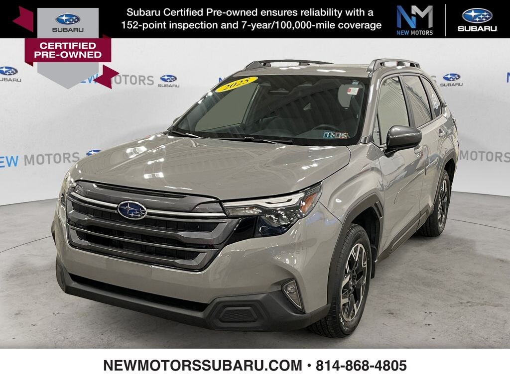 View this certified pre-owned 2025 Subaru Forester SUV Premium for sale at New Motors Subaru in Erie, PA.