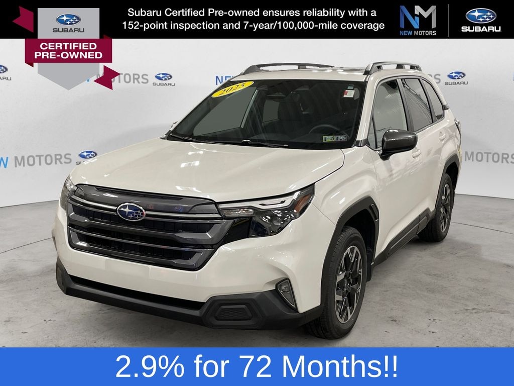 View this certified pre-owned 2025 Subaru Forester SUV Premium for sale at New Motors Subaru in Erie, PA.